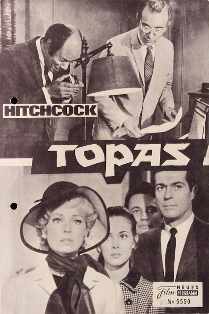 Like so many Hollywood talents, Hitchcock was stereotyped. Also like so many Hollywood talents, whenever he tried to escape stereotyping, he would get criticized. That certainly was the case with TOPAZ. Although not as humorous, nor as romantic, nor even as exciting as the director's best films, the movie is nonetheless an intelligent and intriguing spy drama, one that compares more to a motion picture like DAY OF THE JACKYL than usual Hitchcock fare. His other spy dramas, like NORTH BY NORTHWEST, may be more fun, but none of them are as realistic. In fact, very few spy films have the authenticity as TOPAZ. The story is based on fact. In 1962, a Russian top-level KGB defector informed the U.S. that some very high-level French diplomats, in a group called "Sapphire", were selling secrets to the Soviet Union. TIME Magazine printed this story in April 26, 1968, and did so using the same source that Leon Uris did: the U.S. sympathizing (and exiled) former Chief of French Intelligence, Philippe Thyraud de Vosjoli. Incidentally, a viewer needs to know the chronology and key events surrounding the 1962 Cuban Missile Crises as background, or else the film will be confusing. I suspect many critics condemn it because it's easier for them to dismiss the film rather than confront their own ignorance. Not that this movie is without weaknesses. Hitchcock was no realist, and the grim world of films like THE SPY WHO CAME IN FROM THE COLD is probably the type of ambiance it should have presented, but doesn't. However, I definitely join the camp of those who consider it underrated. I read writers on Hitchcock who unthinkingly rank TOPAZ with his worst stuff, and yet many of us prefer it over THE TROUBLE WITH HARRY, MR. AND MRS. SMITH, and other Hitchcock works that don't get castigated as nearly as much. I can't help but suspect they receive less criticism because they are more typical Hitchcock. This film is atypical Hitchcock, so readjust your expectations accordingly.